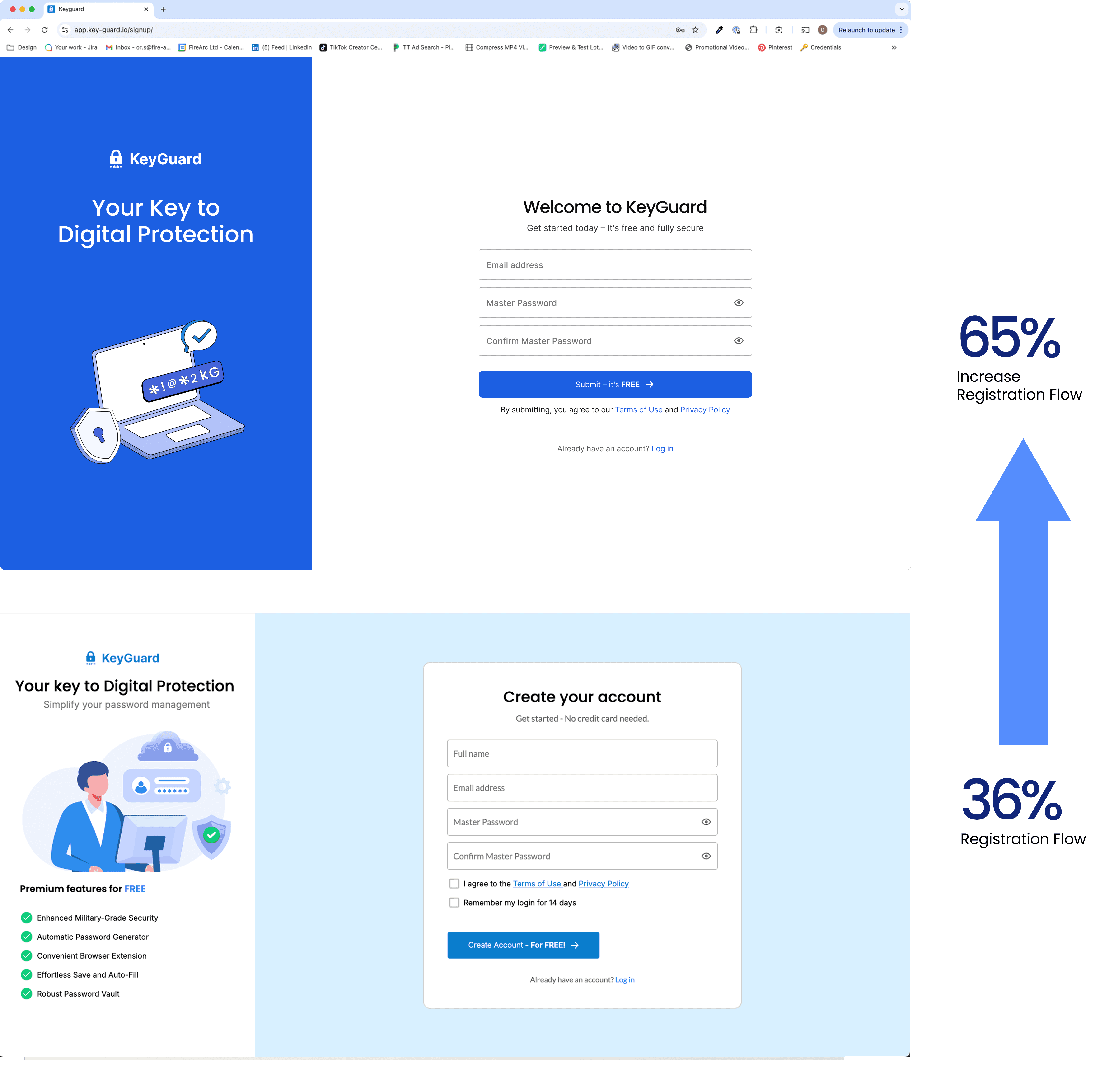To address a drop in user logins to the web app, we made small but strategic changes to the registration and onboarding experience. The updated design, focused on clarity and trust, significantly increased user engagement and improved completion rates across platforms.